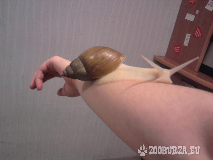 Opis: Witam, jako że mój ślimak Lucyfer okazał się być ciężarną Lucyną i wzbogacił mą kolekcje o 150 małych ślimaczków mam do zaoferowania właśnie te oto maleństwa. Są to dwutygodniowe ślimaczki achatina fulica albino z rodowodem po matce czempionie. Zwierzątka mimo że małomówne są bardzo grzeczne i przyjazne, nie gryzą, nie niszczą ani nie szczekają. Lubią ogórki, wilgoć i wieczorne spacery o zachodzie słońca. Dzieci nie są bite, są zadbane i pod moją stałą opieką. Gorąco polecam. Dla porównania dołączam również zdjęcie Big Mamy tychże pociech. Katarzyna T